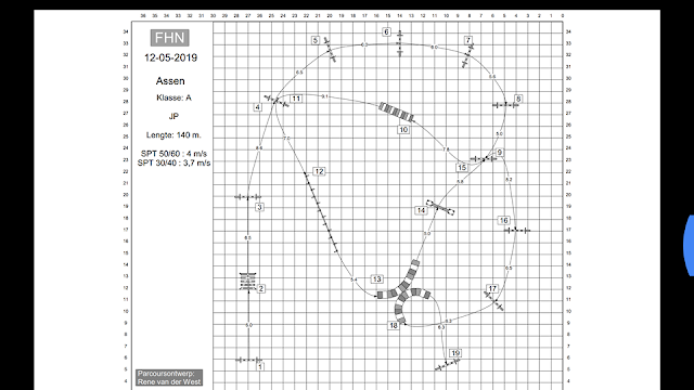 Elwood gaat weer heerlijk op volle snelheid vliegen we door de baan. We komen bij de palen en daar schiet hij erbij langs, herstel de fout en door. Dan mist hij de laatste paal, ik probeer hem de fout daar te laten herstellen maar dat gaat niet zonder slag of stoot. Uiteindelijk doet hij het maar we hebben veel kostbare tijd verloren. We worden vijfde.