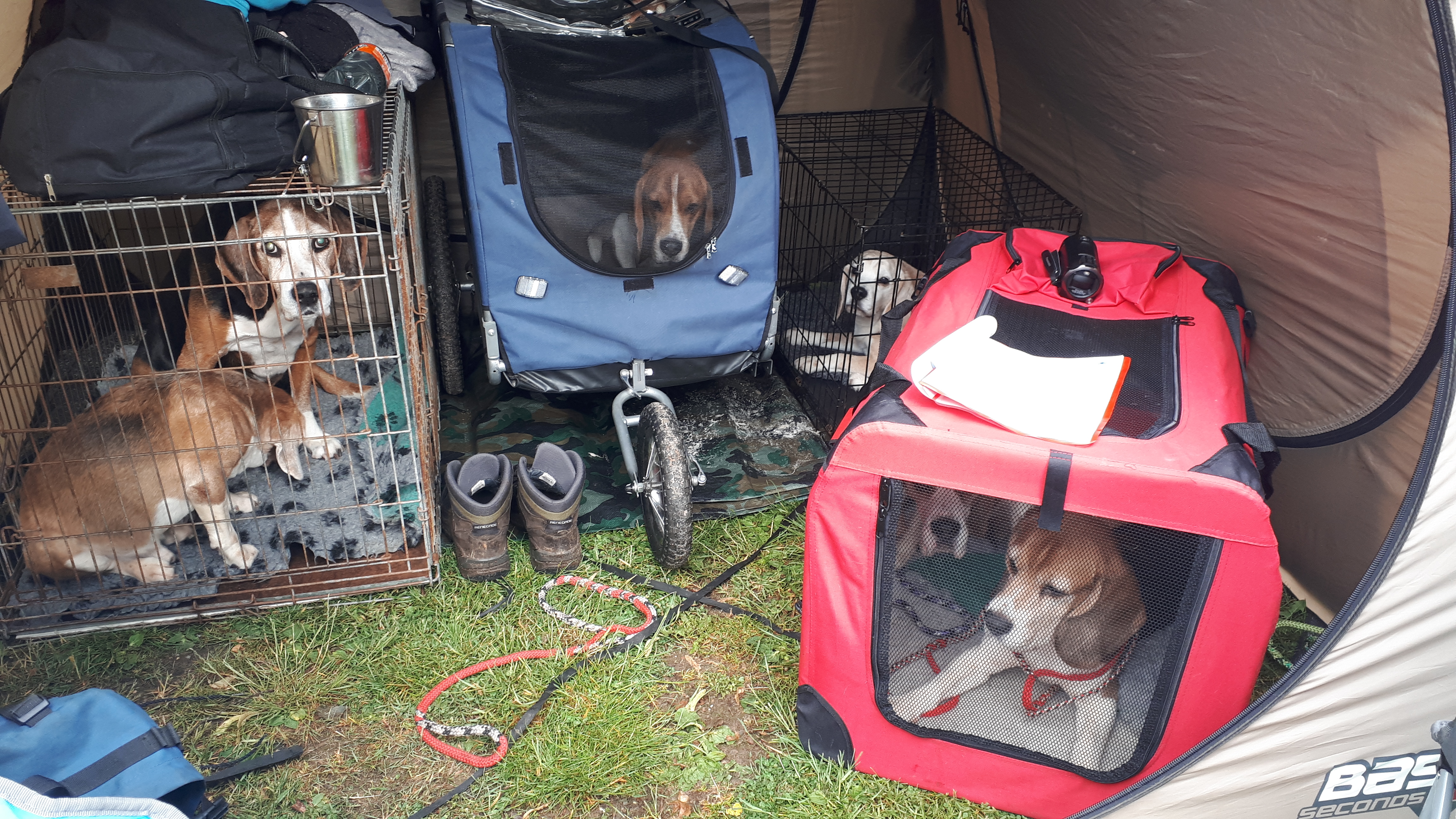 We ruimen de spullen vast op en doen de honden in de auto, we kijken naar de laatste lopers en wachten dan op de prijsuitreiking.
