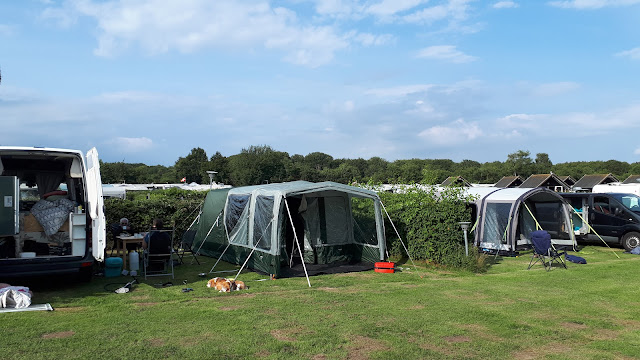 We ontbijten en maken ons dan klaar voor de eerste showdag. Het lijkt een warme dag te worden. De show is helaas niet op de camping, maar op een sportveld een dorp verder. Erg jammer dat ze de show uit het geheel van de VSS week op de camping halen. We nemen de koelmatten en jassen mee en vertrekken dan naar de showground. We zetten onze tent tussen die van onze Deense vrienden.